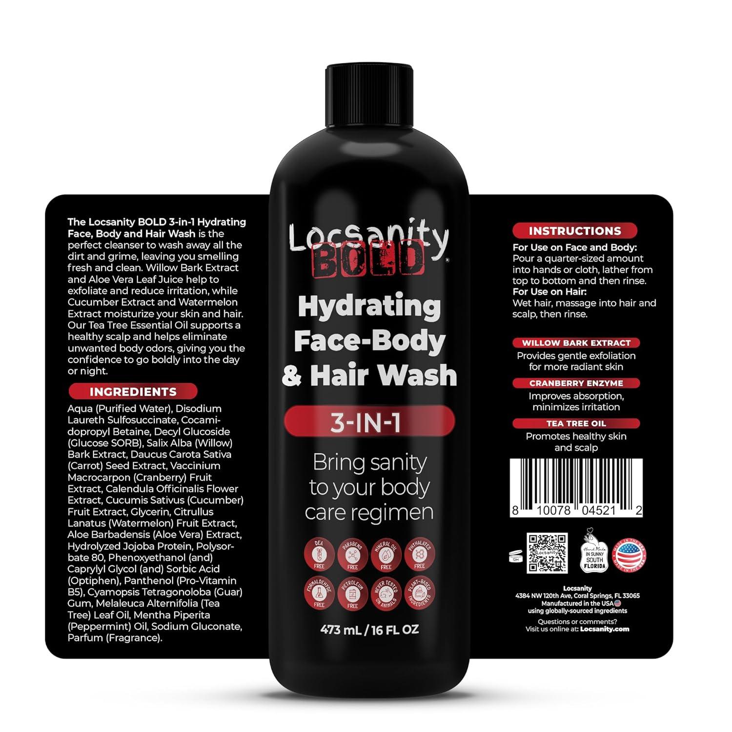 Locsanity BOLD Men’s Bundle is the ultimate 7-in-1 grooming set designed to provide everything you need for your daily routine. This premium bundle includes Loc Spray, 3-in-1 Shampoo, Hygiene Spray, Beard Oil, Body Spray, Dreadlock Powder, and Almond/Jojoba Body Oil, making it your go-to set for full-body care. The 3-in-1 Hydrating Shampoo works as a face wash, body wash, and shampoo, helping you save time while ensuring your skin and hair are hydrated and clean. The Loc Spray is formulated to keep your locs and dreadlocks hydrated, healthy, and manageable, while the Beard Oil and Body Spray provide long-lasting moisture and freshness. Our Dreadlock and Rejuvenating Powder is perfect for scalp rejuvenation, reducing product buildup, and keeping locs clean and fresh. The Almond & Jojoba Body Oil offers deep hydration, leaving your skin feeling nourished and soft after every use. Whether you're looking to maintain healthy locs, a soft beard, or smooth skin, the Locsanity BOLD Men’s Bundle covers all your grooming needs in one convenient package. Get your all-in-one solution for dreadlocks, beard care, and body hydration, and simplify your daily grooming routine with this premium bundle.