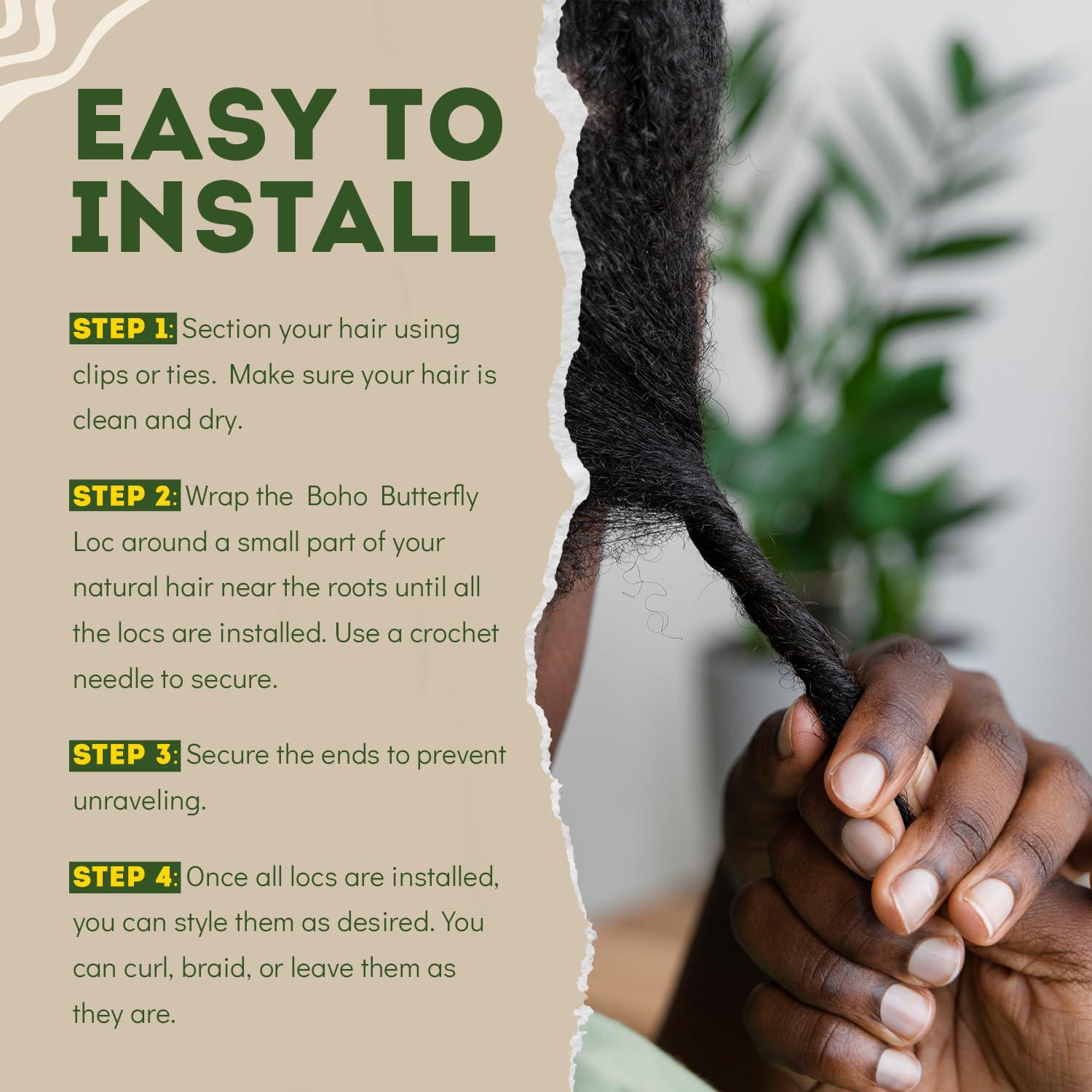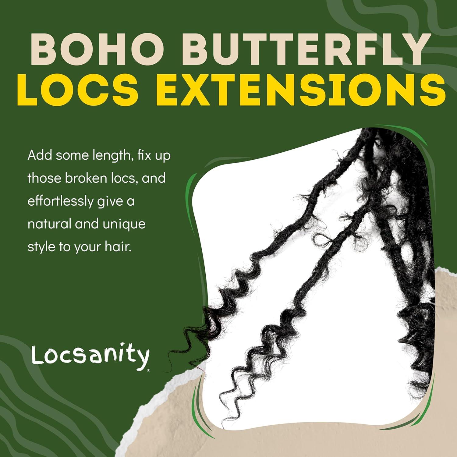 Authentic Human Hair Butterfly Locs – Achieve soft, natural-looking Bohemian locs with Locsanity’s crochet hair extensions. Made from authentic human hair, it blends seamlessly with your existing locs, giving you a boost of confidence every time you wear it.