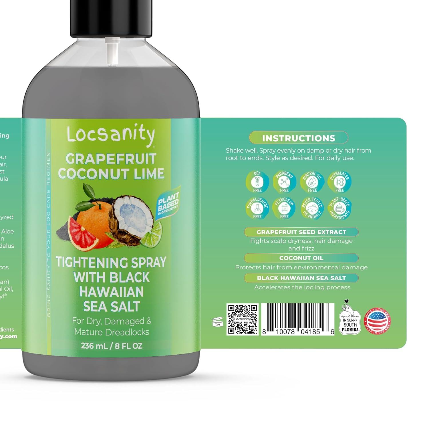 Locsanity Grapefruit Coconut & Lime Moisturizing and Tightening Spray Mist w/Black Hawaiian Sea Salt – 4 fl oz: Hydrating & Tightening Spray for Locs, Dreads, Braids, & Natural Hair