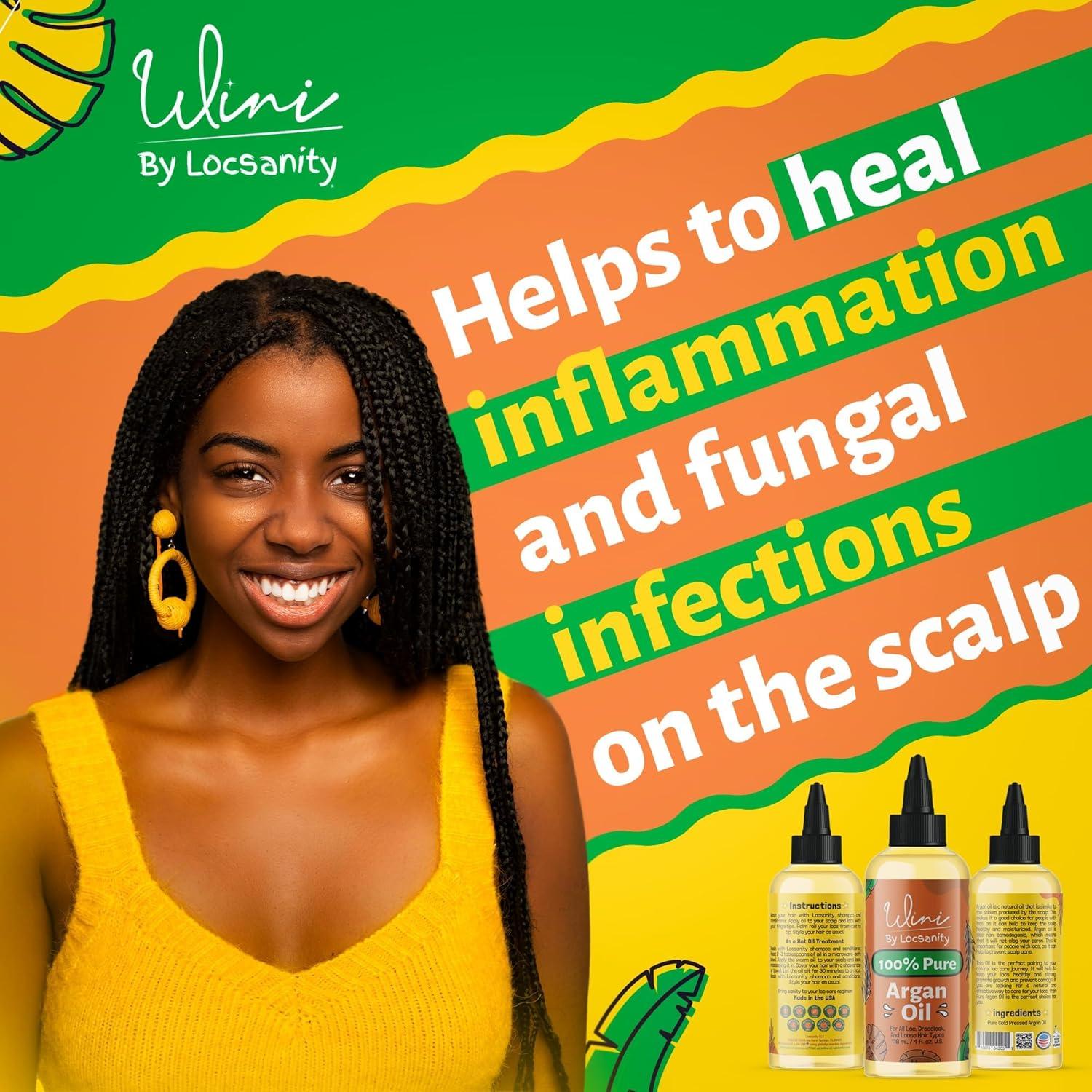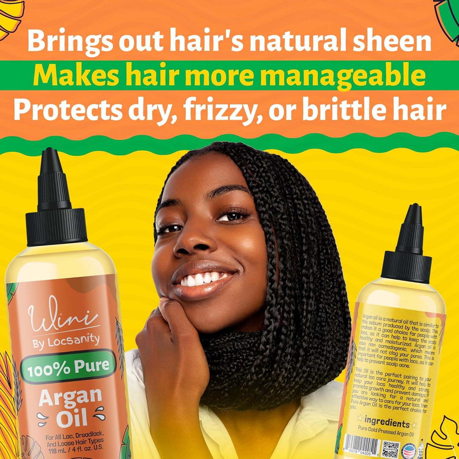 Locsanity Wini Pure 100% Jojoba Oil Organic Cold Pressed Unrefined Non-GMO – 4 fl oz: Moisturizing Face & Hair Oil for Growth, Skin Care, Strengthening & Nourishing(Argan Oil)