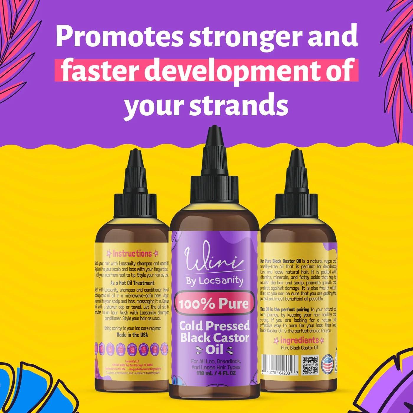 Locsanity Wini Pure 100% Jojoba Oil Organic Cold Pressed Unrefined Non-GMO – 4 fl oz: Moisturizing Face & Hair Oil for Growth, Skin Care, Strengthening & Nourishing(Black Castor Oil)