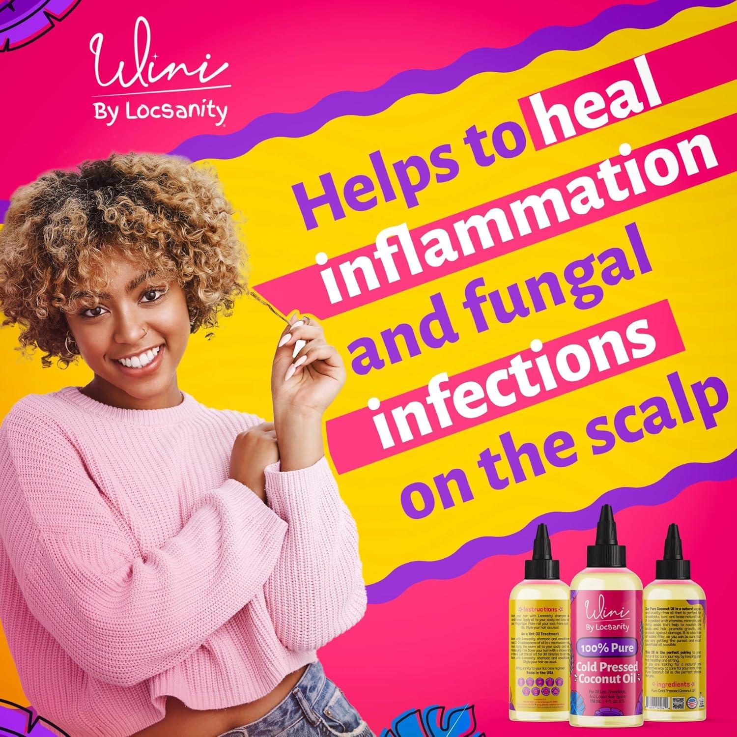 Locsanity Wini Pure 100% Jojoba Oil Organic Cold Pressed Unrefined Non-GMO – 4 fl oz: Moisturizing Face & Hair Oil for Growth, Skin Care, Strengthening & Nourishing(Cold Pressed Coconut Oil)