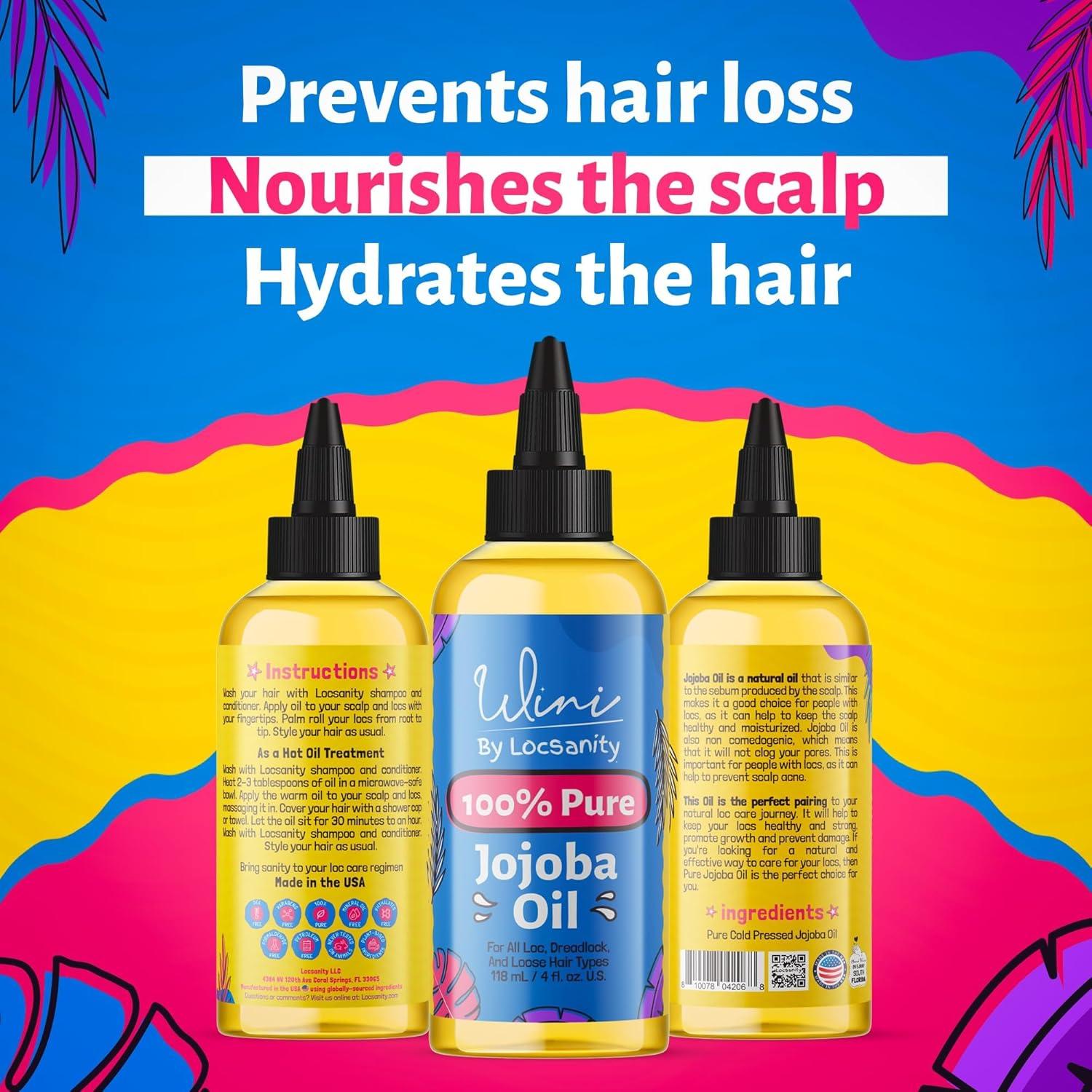 Locsanity Wini Pure 100% Jojoba Oil Organic Cold Pressed Unrefined Non-GMO – 4 fl oz: Moisturizing Face & Hair Oil for Growth, Skin Care, Strengthening & Nourishing(Jojoba Oil)