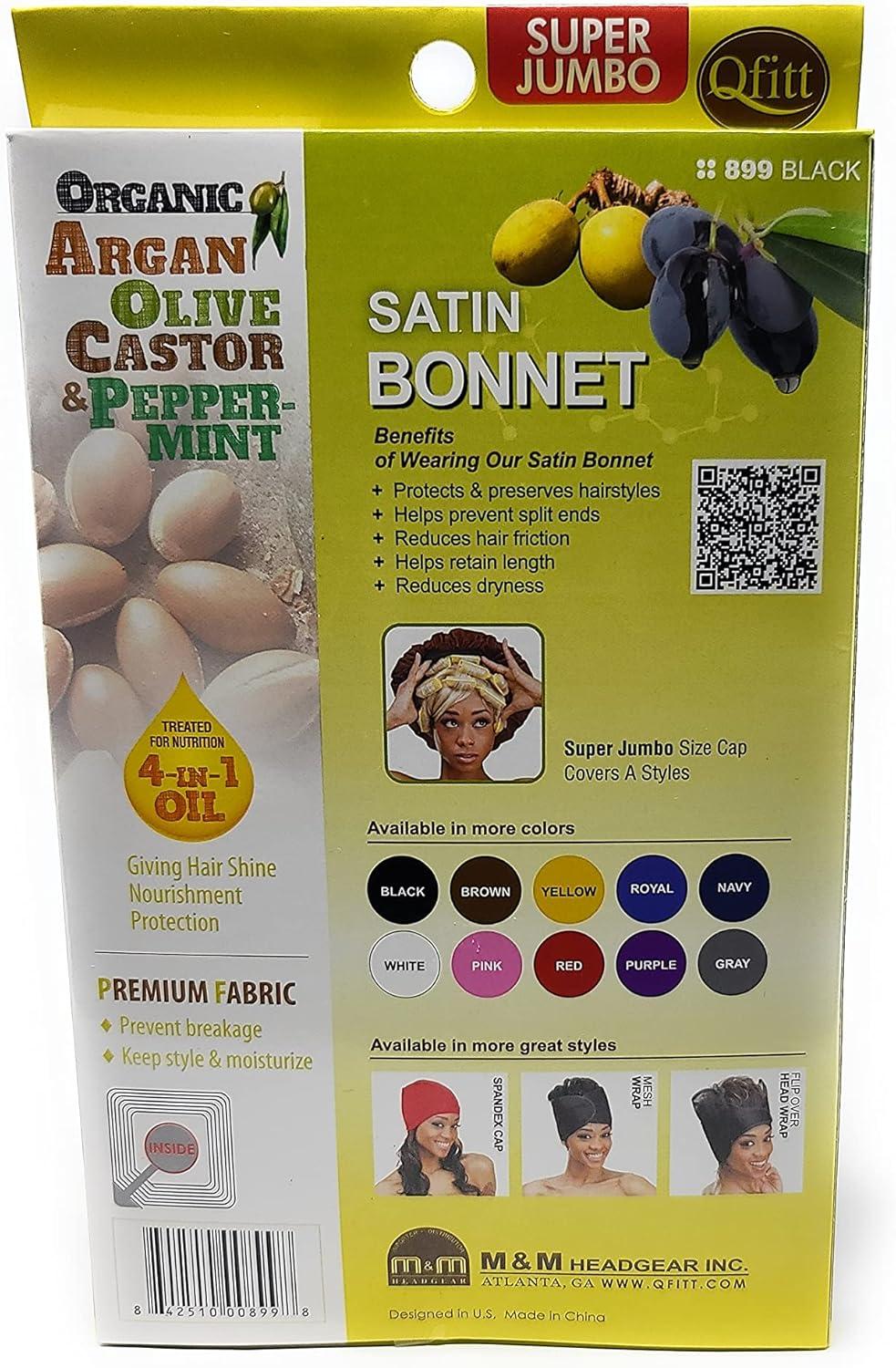 Qfitt Organic Argan + Shea Butter Olive Oil Super Jumbo Satin Bonnet #899 Black