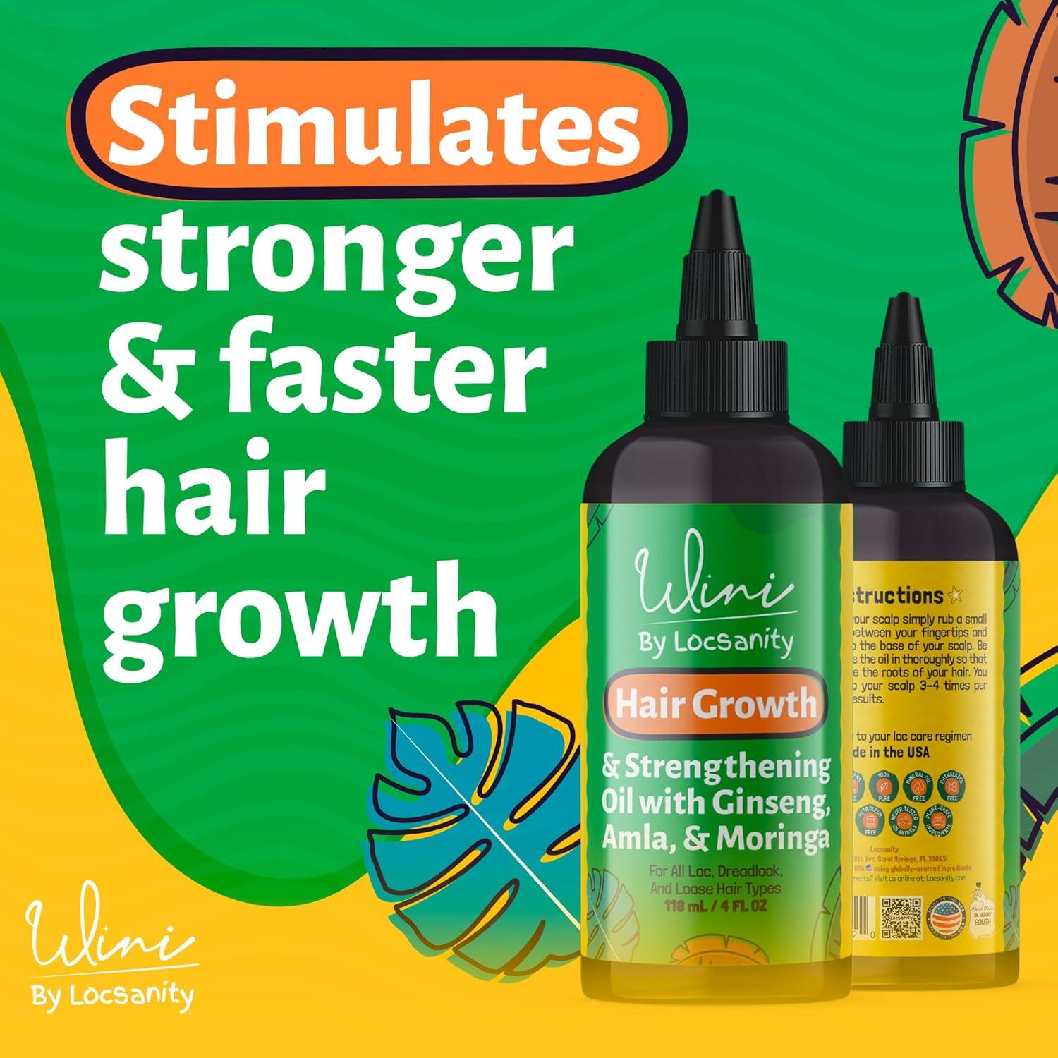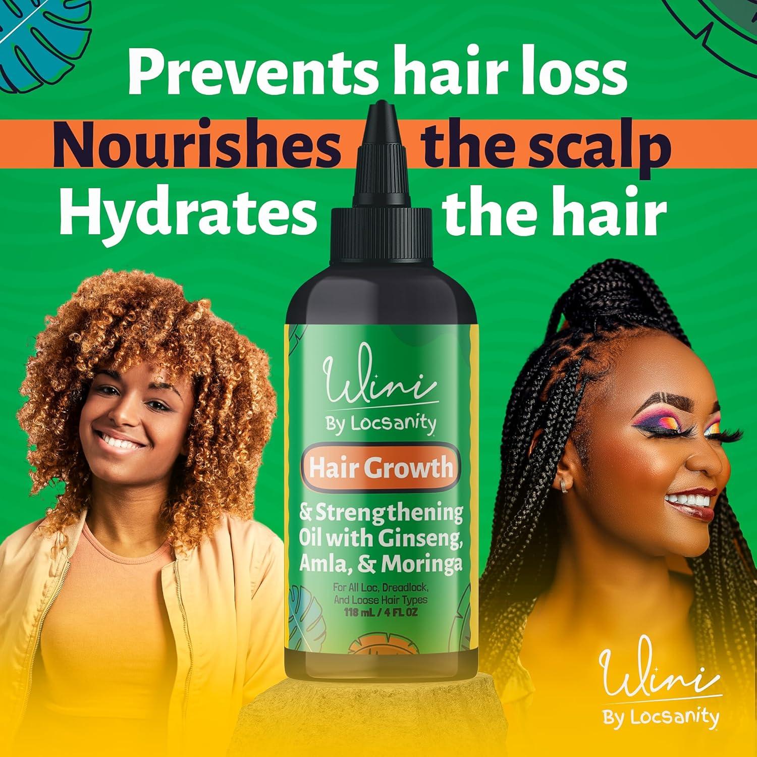 Wini by Locsanity Hair Growth Oil for Locs, Dreadlocks, Dreads, Loose Natural Hair – Blackberry, Alma, Moringa, Tamanu, Flax Seed, Ginseng, Hibiscus, Bhringraj 100% Narural Vegan 4 OZ